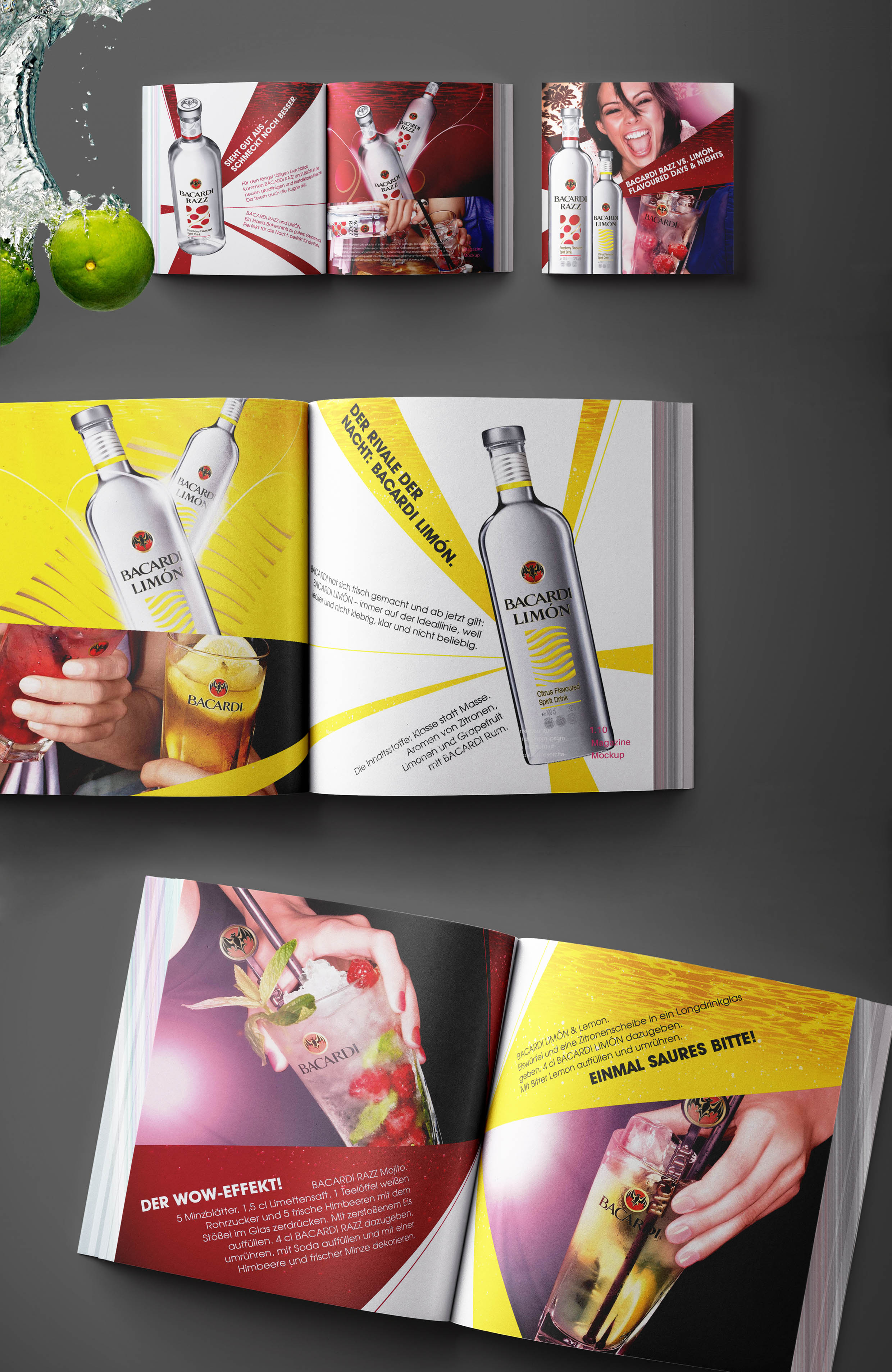 Bacardi gehört zu den meistverkauften Spirituosenmarken der Welt. Zu den über 200 Marken des Konzerns gehören die flavoured Rums Bacardi Razz und Bacardi Limon, die wir zusammen mit unseren Protagonisten durch die Nacht geschickt haben. Ein außergewöhnliches Projekt, bei dem Konzeption, Shooting, Design und Text aus einer Hand kamen.